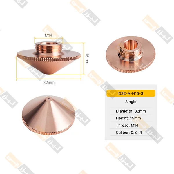 نازل تکلایه (Single Layer): این نازلها دارای یک مسیر خروج گاز هستند و معمولاً برای برشهای دقیق و ورقهای نازک استفاده میشوند. ویژگیها: تمرکز بالای پرتو لیزر مناسب برش استیل نازک لبه برش تمیز و کنترلشده